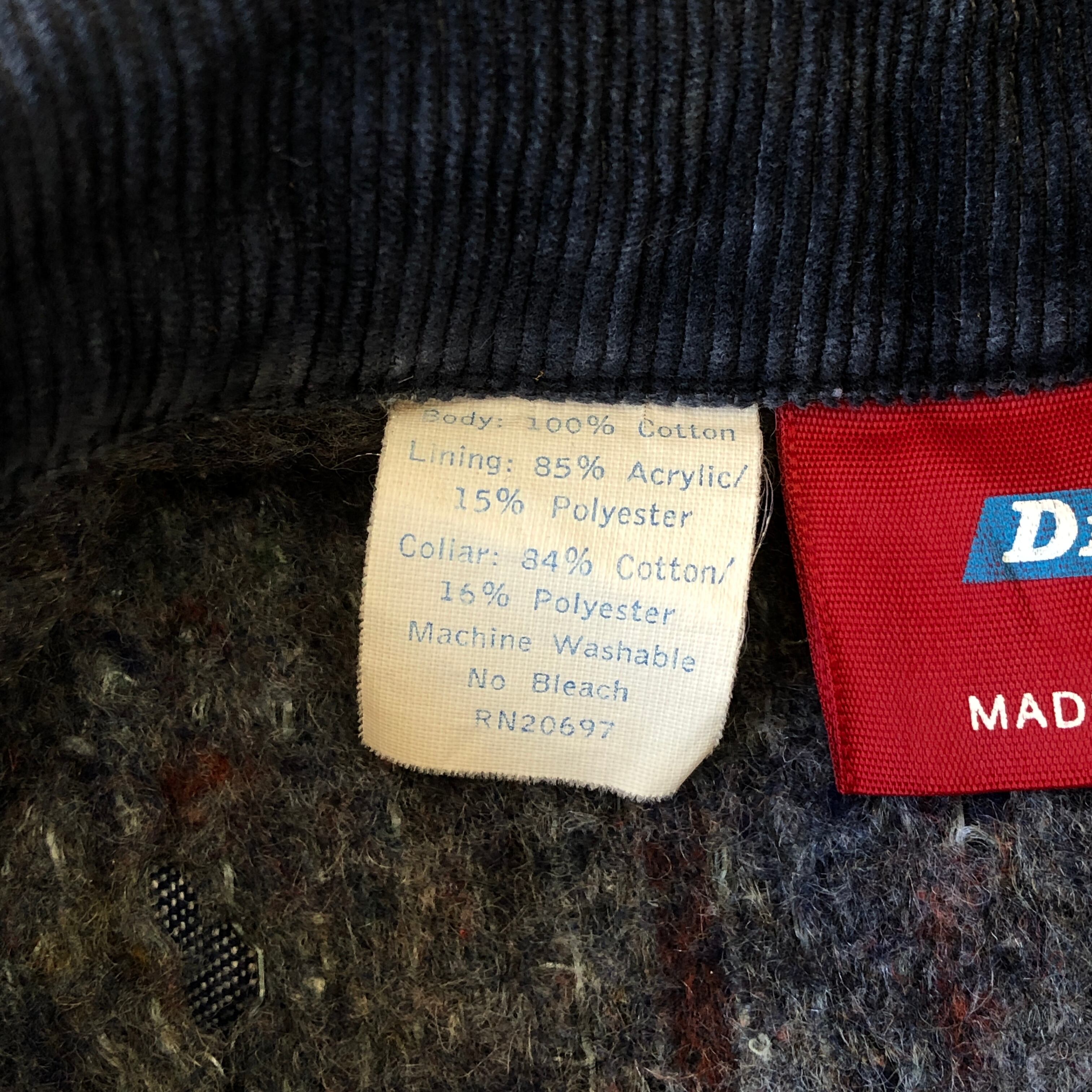 襟のコーデュロイ部分にシミ、裏地に多少の毛玉有り。
