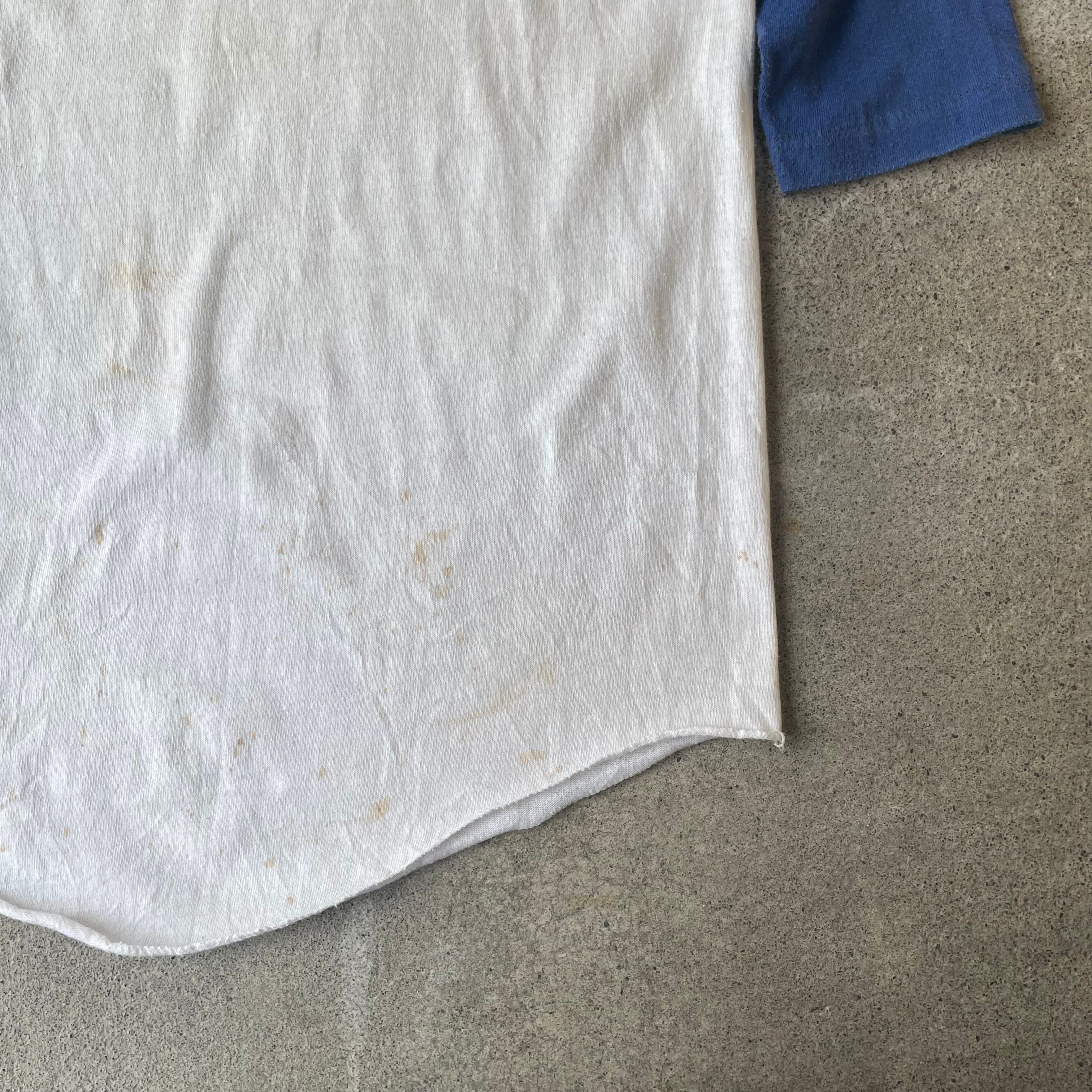 全体的に細かな汚れが多く見られますが、Vintageの味を出している7分丈ラグランTシャツです。