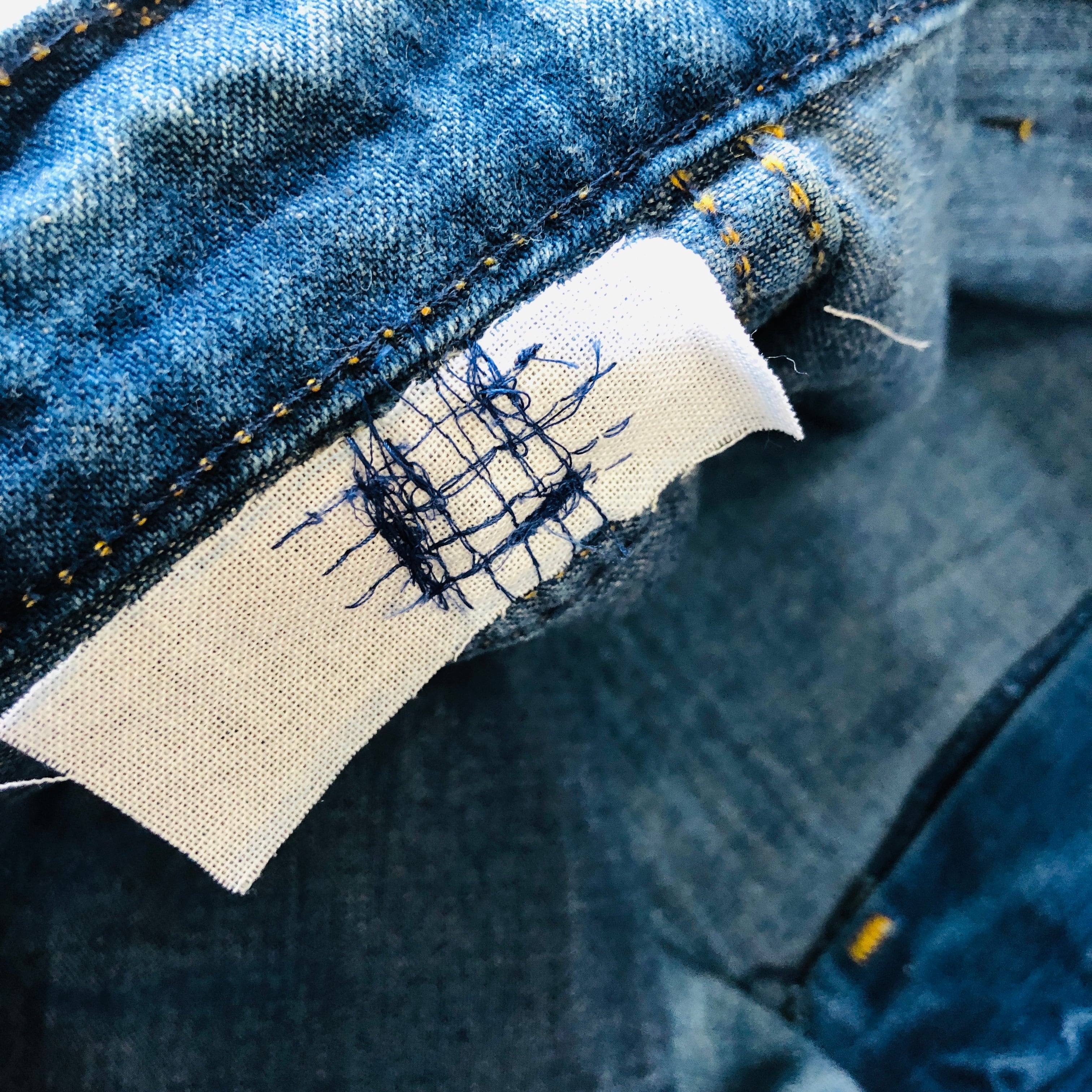 ベルトループの付け直し跡、股下部分お直し跡有り。