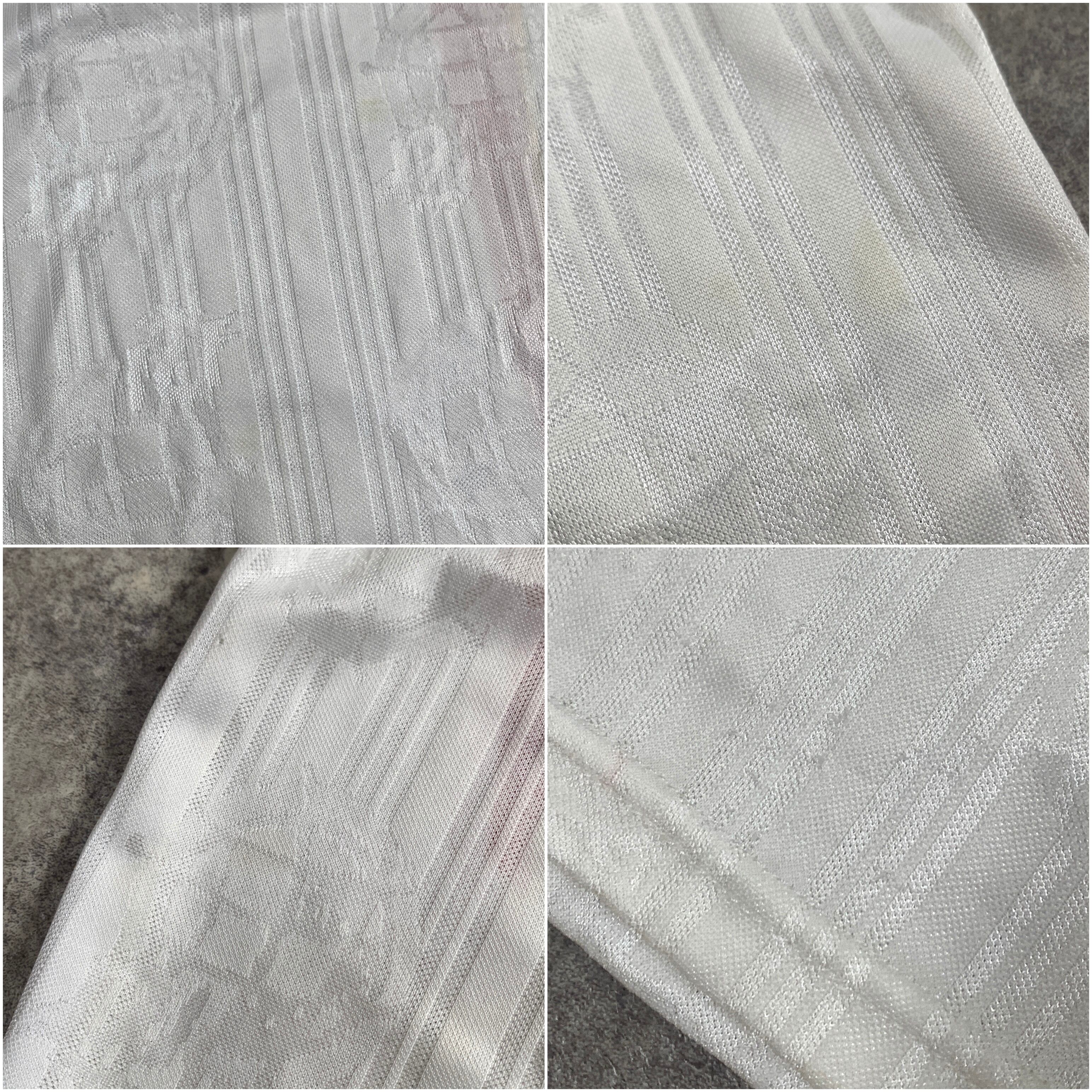 フロント裾、襟に赤いシミ。