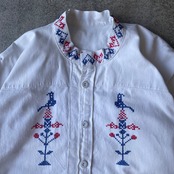 生地は少し厚め、独特な刺繍デザインが入った一枚です。