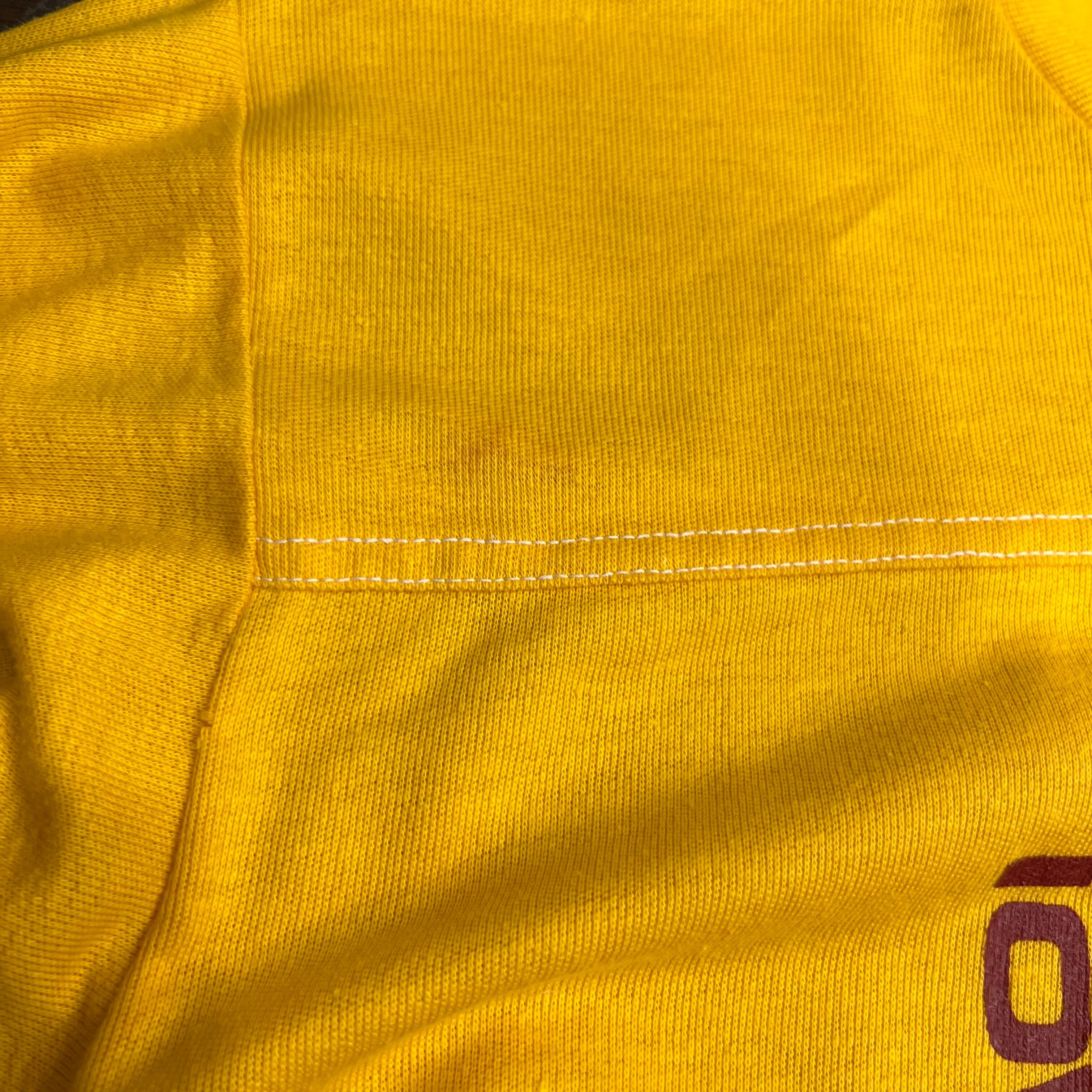 フロントプリント部分にシミ、襟に小さな穴あり。